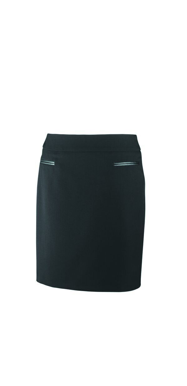 Jupe de service. Ceinture avec fermeture invisible milieu dos. 2 poches basses passepoilées finitions effet cuir. Pinces dos. Fente d'aisance milieu dos. Entièrement doublée. Coupe droite. Longueur : 48 cm.