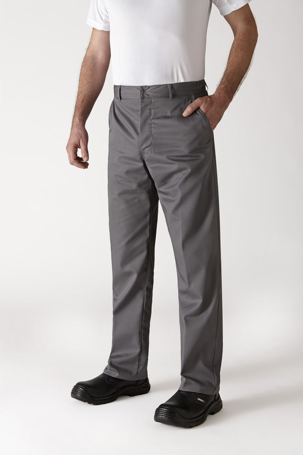 Tunique homme, col mao. Fermeture milieu devant par boutons-pression sous patte. Poche poitrine, 2 poches BIP, 2 poches basses dans découpe coté. Col et côtés contrastés. Manches courtes. Fentes cotés. Longueur : 78 cm.