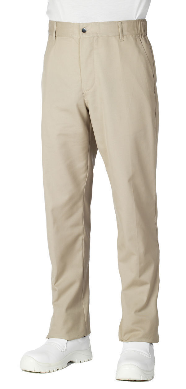 Tunique homme, col mao. Fermeture milieu devant par boutons-pression sous patte. Poche poitrine, 2 poches BIP, 2 poches basses dans découpe coté. Col et côtés contrastés. Manches courtes. Fentes cotés. Longueur : 78 cm.