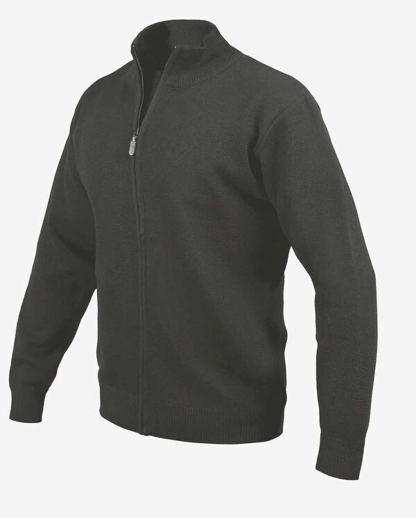 Gilet zippé à col montant. Col, finition bas de vêtement et poignets en bord-côte 2/1. Fermeture centrale par zip.