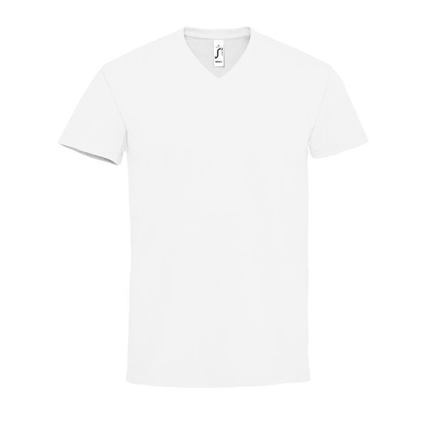T-shirt homme. Col V en bord-côte avec élasthanne. Bande de propreté au col. Manches courtes. | Coton semi-peigné Ringspun.