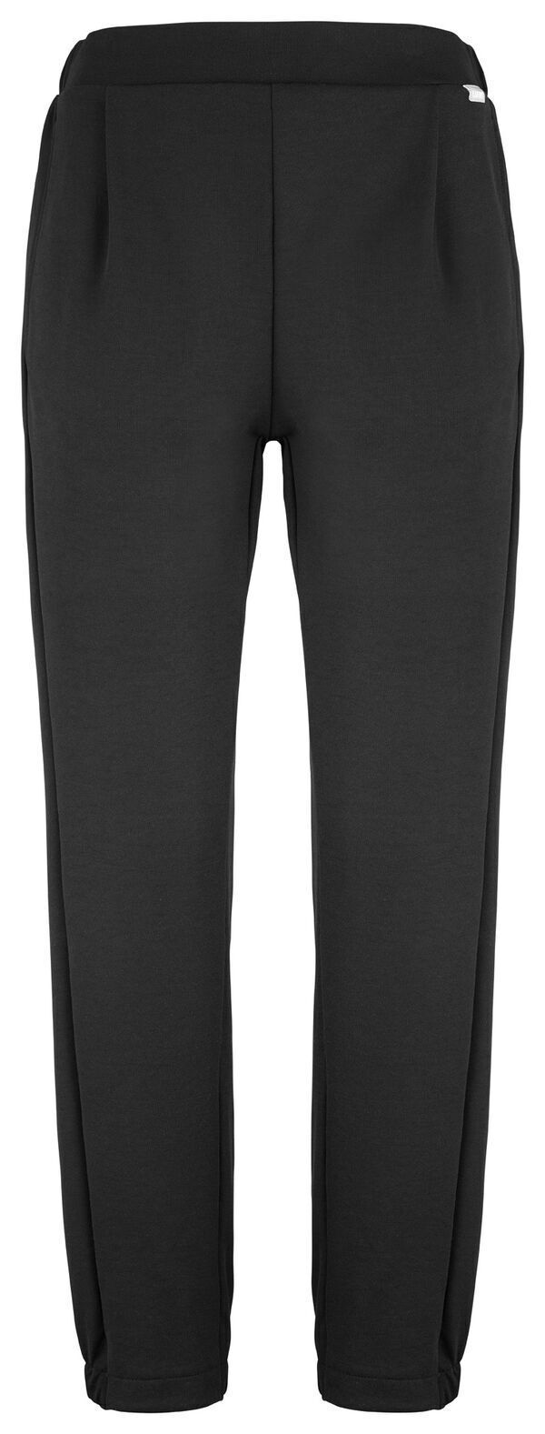 Pantalon femme. Ceinture élastiquée dos et côtés. 2 plis devant, 2 poches insérées dans la couture côté. Bas de jambes élastiqués au dos. E.J. : 70 cm.