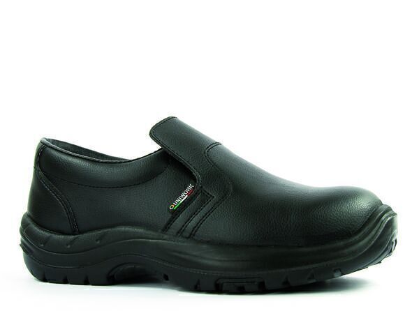 Mocassins de sécurité homme. Tige en microfibre hydrofuge. Semelle de propreté GIOVE®. Entièrement doublé, avec doublure non tissée PIGGY® favorisant l'évacuation de l'humidité. Embout acier inoxydable 200J. Semelle externe ODEON® PU2D. Fabrication italienne.