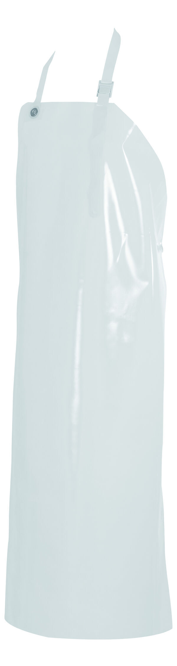 Tablier avec tour de cou réglable. Attache par cordon élastique. Hauteur : 100 cm. Largeur : 75 cm.