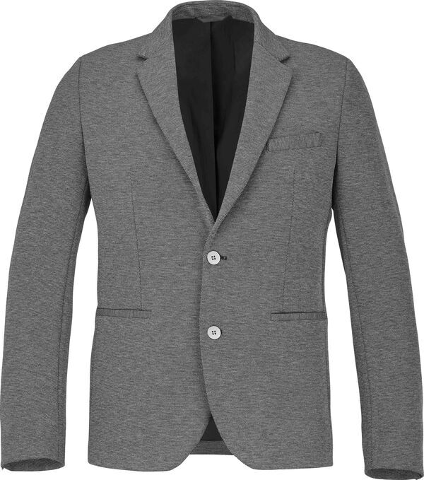 Veste homme. Col tailleur. Fermeture 2 boutons. 1 poche poitrine et 2 poches basses passepoilées. Pinces taille. Fente à l'arrière. Manches longues. Bas de manches 3 boutons.