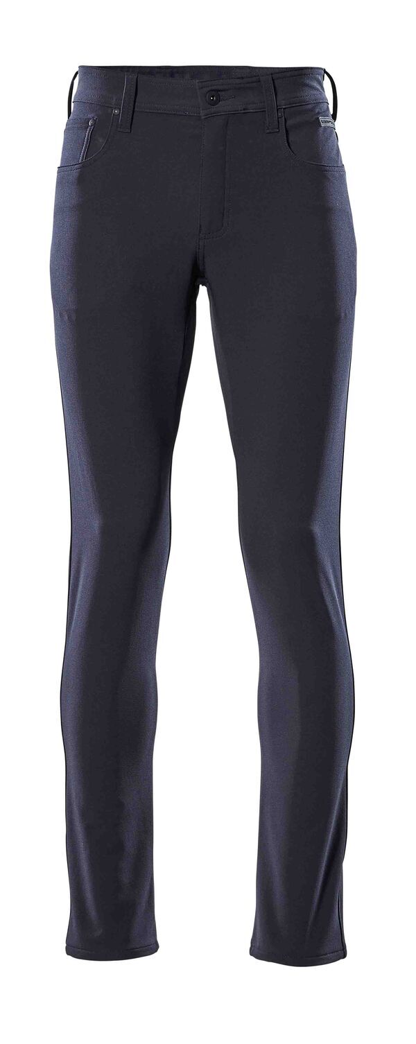 Pantalon homme. Ceinture 6 passants fermée par un bouton et braguette zip. 2 poches avant latérales, 1 poche ticket. 2 poches arrières plaquées. E.J.: 82 cm.