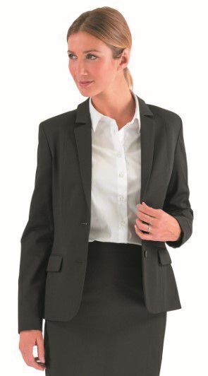 Veste doublée • Epaulettes • Col tailleur • 2 poches poitrine intérieures • Poches basses à double passepoil et rabat • 3 boutons sans boutonnière en bas de manche • Fermeture par 2 boutons • Découpe devant et dos