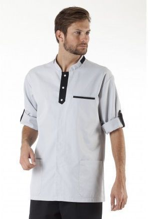 Col officier avec patte contrastée,Manches transformables avec patte contrastée,1 poche poitrine passepoilée coloris contrasté,2 poches basses plaquées (poche téléphone côté droit porté et double poche stylo côté gauche porté),Fermeture par 6 pressions (dont 3 imitation boutons),Longueur : 80cm