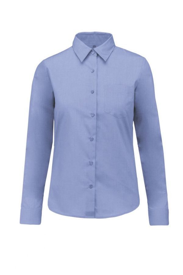 Chemise manches longues femme - 65% polyester / 35% coton. Tissu popeline. Entretien facile. Col non boutonné. Boutons ton sur ton. Poche poitrine côté gauche en V. Poignet réglable à angles arrondis avec patte de manche indéchirable. 1 bouton de rappel. Bas arrondi.