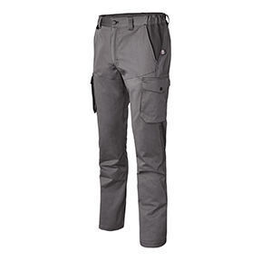 Pantalon multipoches. Ceinture élastiquée côtés fermée par bouton plastique noir, 5 passants dont 2 plus larges au dos. Braguette avec fermeture à glissière. Réhausse dos. Poches italiennes avec coins cassés. 2 poches cuisses multi-compartiments. Découpes ergonomiques contrastés en tissu envers. Accroche clefs inséré sous la ceinture devant droit. Poche plaquée au dos avec partie basse volante. Jambes préformées. Double surpiqûres. E.J. : 84 cm.