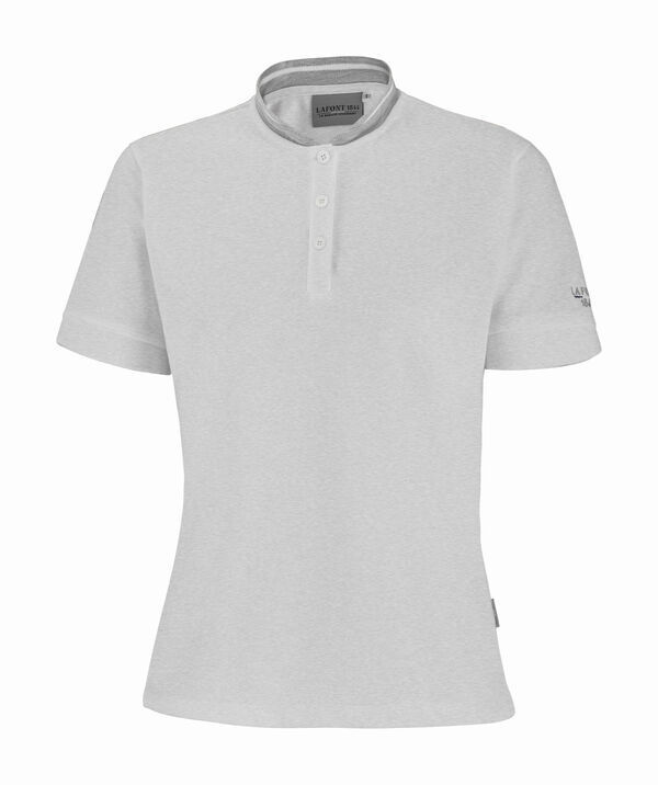 Polo femme à col officier. Patte de boutonnage 3 boutons. Col et bas de manche en bord-côte. Fentes aux côtés. Broderie LAFONT 1844 sur manche gauche.