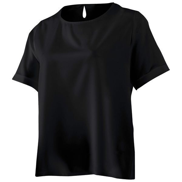 Top fluide entièrement doublé. Encolure ronde. Décolleté dos avec goutte. Manches courtes avec petit revers.