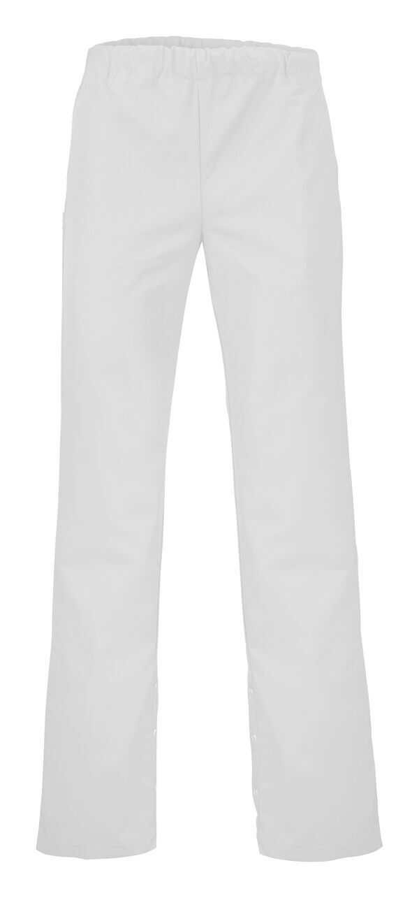 Pantalon mixte. Taille élastiquée avec cordon de serrage. 2 poches dans les coutures latérales. Longueur bas de jambe réglable par boutons-pression cachés. E.J. : 87 cm.