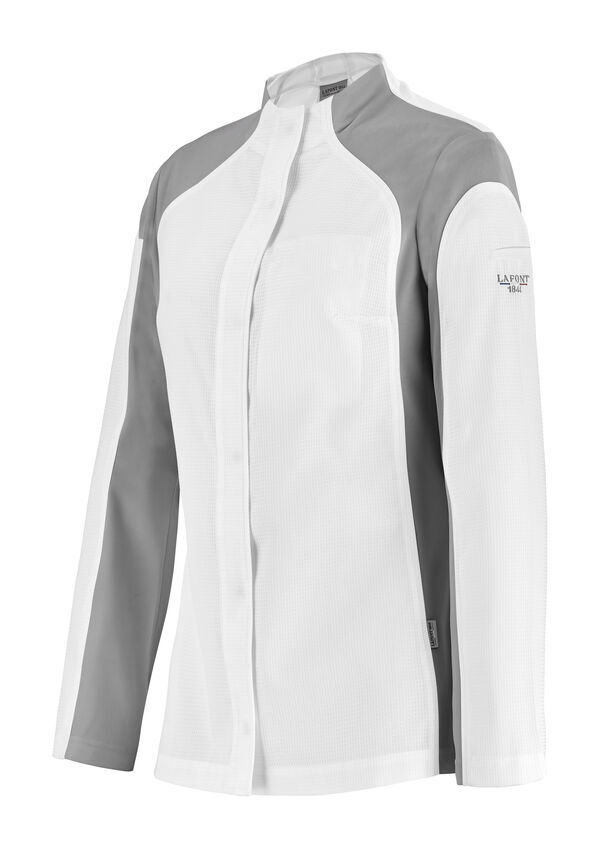 Veste bi-matières avec empiècements ergonomiques. Col montant. Fermeture milieu devant par pressions extra-plates. Plastron, dos et dessus de manches en nid d'abeille. Empiècement épaule, cotés, et dessous de manche en maille. Poche poitrine passepoilé pour stylo/pince à double compartiment. Maille antibactérienne. Matières extra-légère et ergonomique.