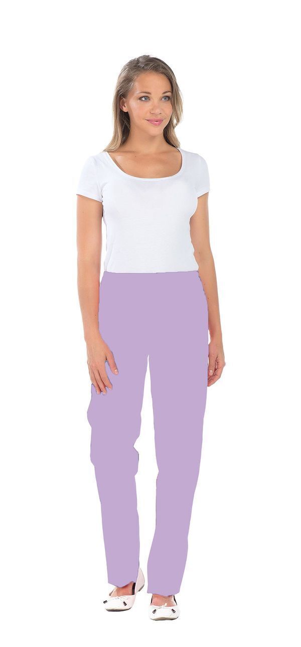 Pantalon femme. Taille semi-élastiquée effet ventre plat. 2 poches italiennes. E.J. : 82 cm.