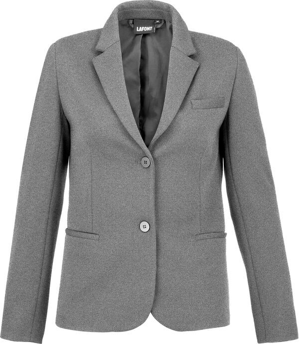 Veste femme. Col tailleur. Fermeture 2 boutons. 1 poche poitrine et 2 poches basses passepoilées. Pinces poitrine. Manches longues. Bas de manches 3 boutons.